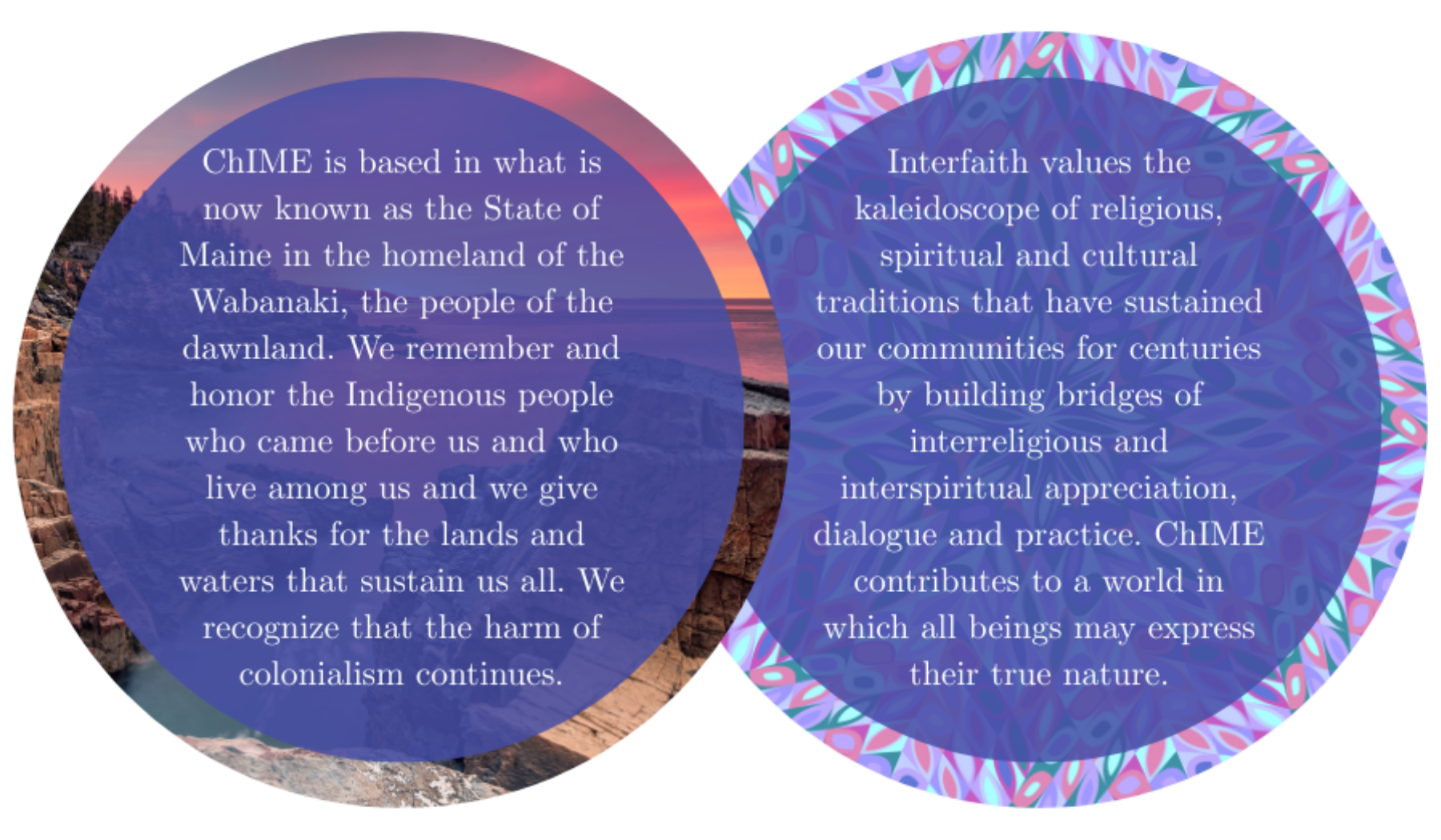 Interfaith values the kaleidoscope of religious, spiritual, and cultural traditions that have sustained our communities for centuries. By building bridges of interreligious and interspiritual appreciation, dialogue, and practice, ChIME contributes to a world in which all beings may express their true nature.